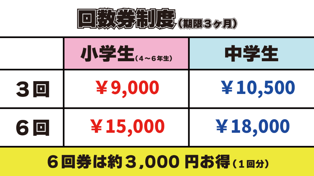 プレ参加費/小学生2,000円(税込)、中学生2,400円(税込) ※現金払い(兄弟割は適用なし)