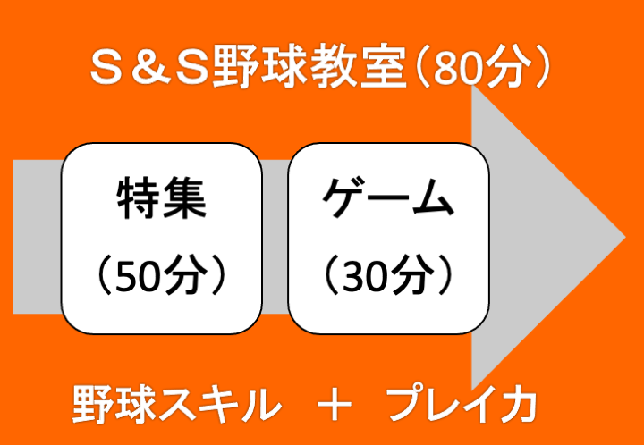 「S&S野球教室」は、1回80分「特集⇒ゲーム」の1回完結型の野球教室です。