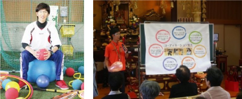 2年間、高橋ゼミが実施する小学校低学年向けのボール遊び教室「バルシューレ教室」の企画・運営に没頭。被災地の幼稚園、小学校にて実践経験あり。そのノウハウを用いて考案した企画が大学独自の制度であるユニーク・プランに採用される。(平成25年度)