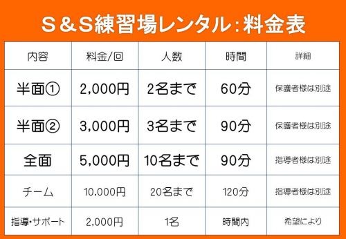 S&S練習場レンタルでは、ご利用人数に合わせて料金プランをご提案させていただきます。もちろん、少人数(2~3人程度)で全面を貸し切ってもらっても構いません。こちらの人数を参考にプランを選んでいただき、ご予約をお願い致します。